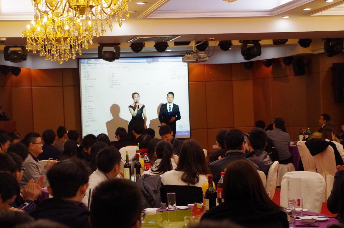 大家落座后,主持人上台致辞,宣布年会盛典盛大开幕。
