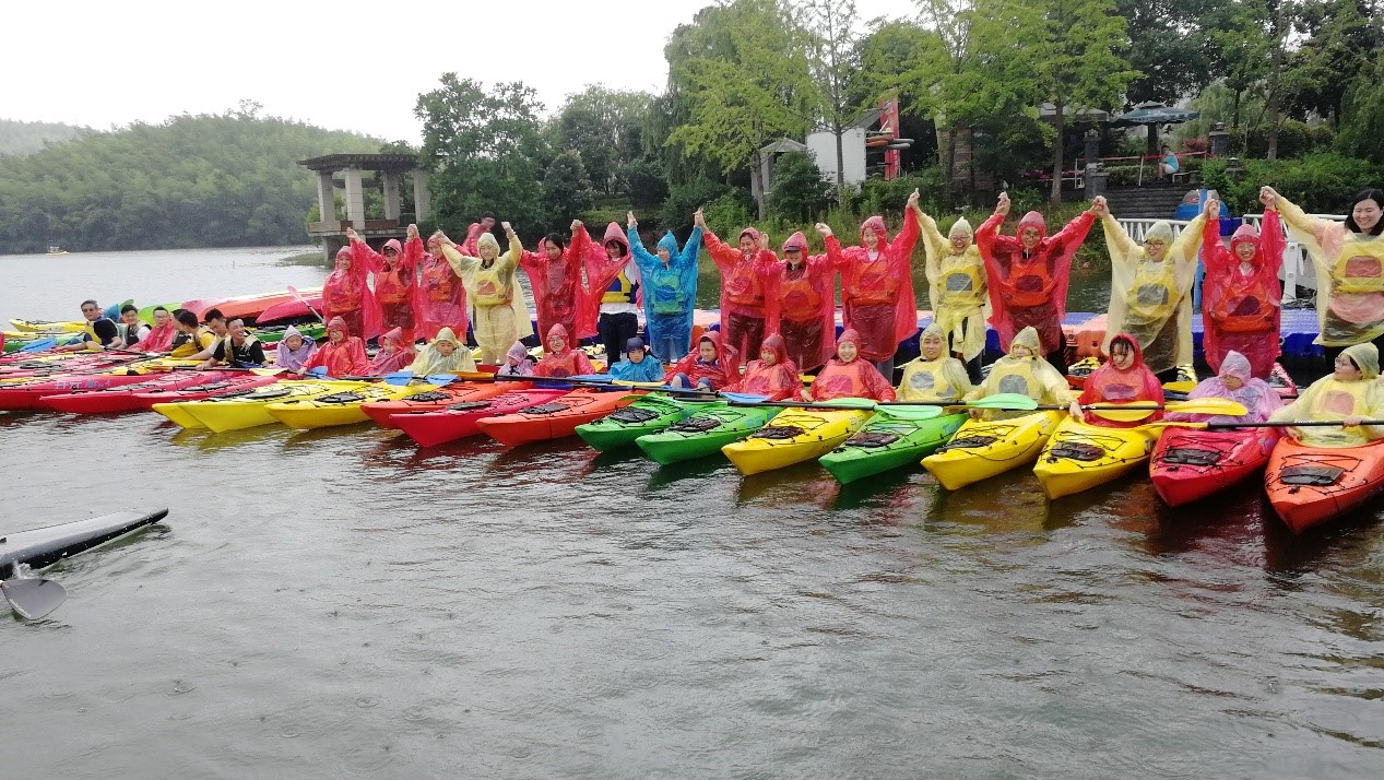 即使下着雨,也阻挡不了大家的游玩热情,每个人都尽情的划动着桨叶,享受着在湖面上自由游动的感觉。