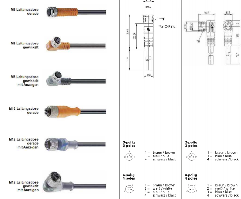 -带电缆的插座(M8,M12)(标准长度2m,5m,10m)
