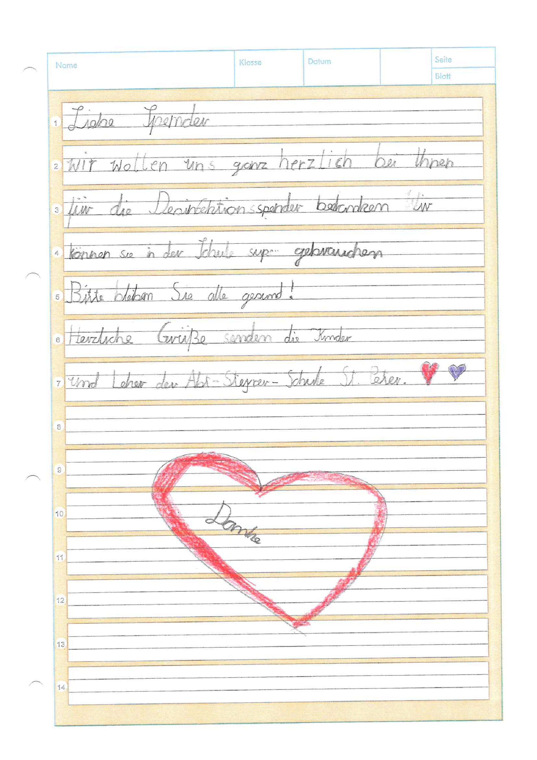 我们深感惊讶和高兴,因为您不仅可以在短时间内交货,而且将这些设备捐赠给我镇,以支持Abt-Steyer小学。