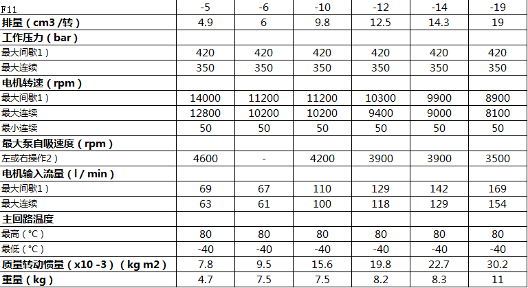排量(cm3 /转)=19,选F11-19