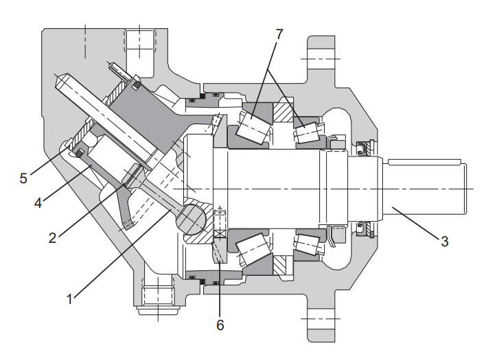 •轴和缸筒之间的40°角可实现非常紧凑,轻便的电动机/泵。