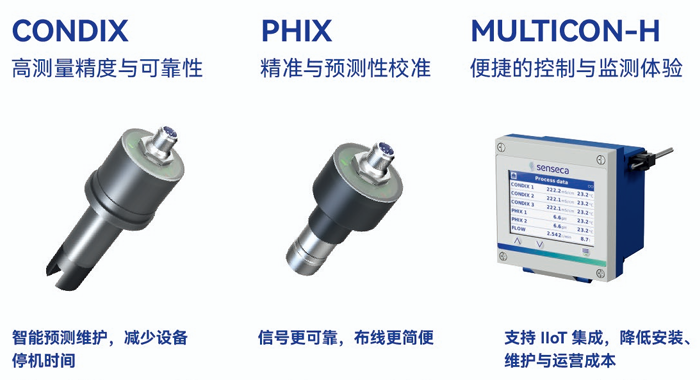 在反渗透(RO)系统、气体洗涤塔等典型工业场景中,电导率与pH值是衡量水质与工艺稳定性的关键指标。Senseca以CONDIX数字电导率变送器与PHIX pH/ORP变送器为核心,构建起全天候、连续、高响应的水质监测体系: