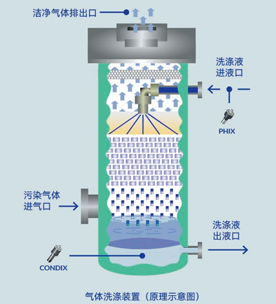气体洗涤器(洗涤塔)用于清除工业废气中的有害颗粒和气体。通过以下双控策略实现高效净化: