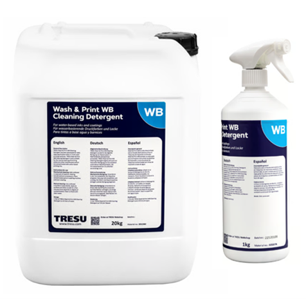 柔性版印刷产线涉及水性、UV及溶剂型等多种油墨体系,配套部件材质涵盖陶瓷、聚合物、橡胶及金属等。为提升清洁效率并延长核心部件使用寿命,Tresu依据油墨特性与材质兼容性,开发了Wash & Print系列专用清洗剂。其中以下5款为经市场验证、产线复购率高的热销型号。产品按油墨体系与材质兼容维度进行精准划分,并提供1kg便携装与20kg产线装两种规格,满足从日常维保到深度清洗的多元化作业场景: